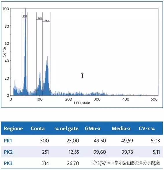 在生理條件下,細胞自然呈現(xiàn)不同階段的細胞周期的DNA圖譜。
