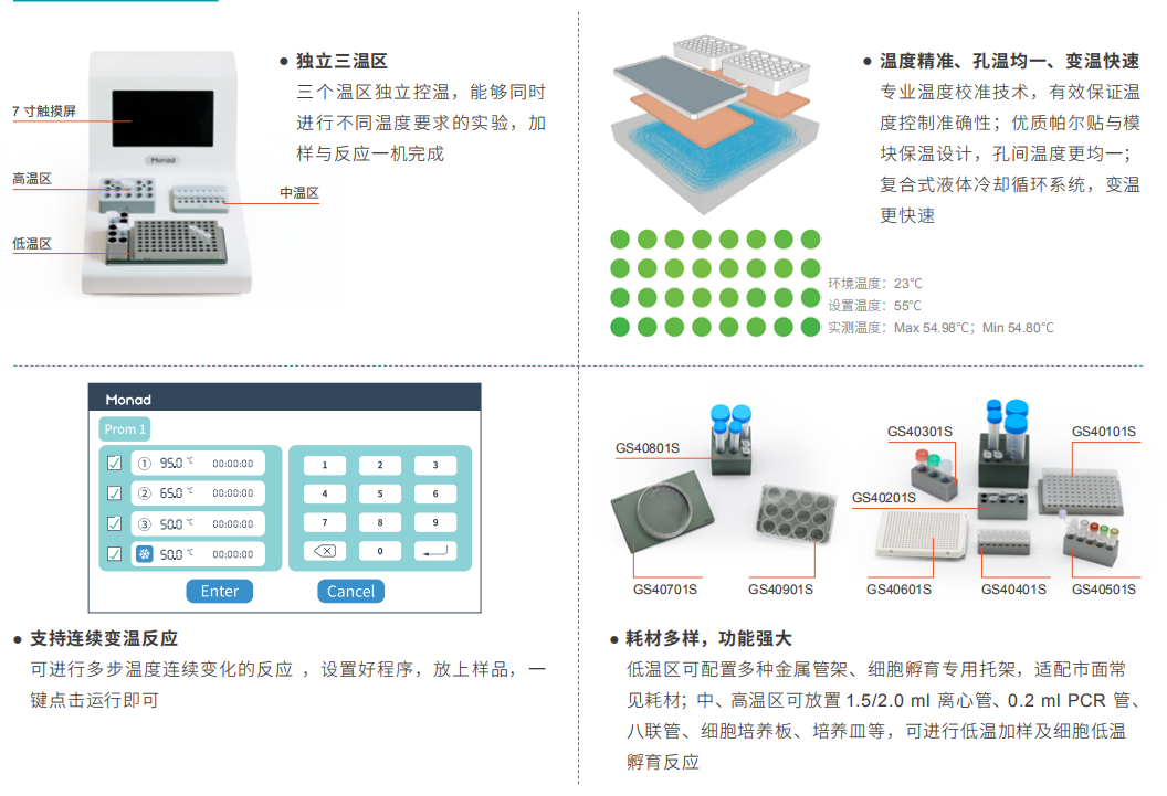 中溫區(qū):可設置溫度范圍為 8~99.9℃,用于試劑樣品的解凍、酶切實驗、熱激反應及逆轉錄類連續(xù)變溫反應等 。