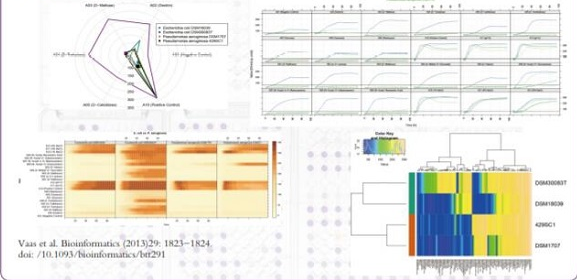OPM是一個基于R語言環(huán)境的統(tǒng)計學軟件包,用于PM數(shù)據(jù)分析,提供了優(yōu)化和分析動力學曲線,聚合曲線參數(shù),記錄樣品和實驗設(shè)置的相關(guān)元數(shù)據(jù)以及用圖形和統(tǒng)計方法分析高度復(fù)雜的數(shù)據(jù)集等工具。該軟件包還包括95%的置信度圖,增強的熱圖圖形以及用于比較動力學曲線的定制多重比較,還可以將數(shù)據(jù)和KEGG數(shù)據(jù)庫結(jié)合分析代謝路徑等。
