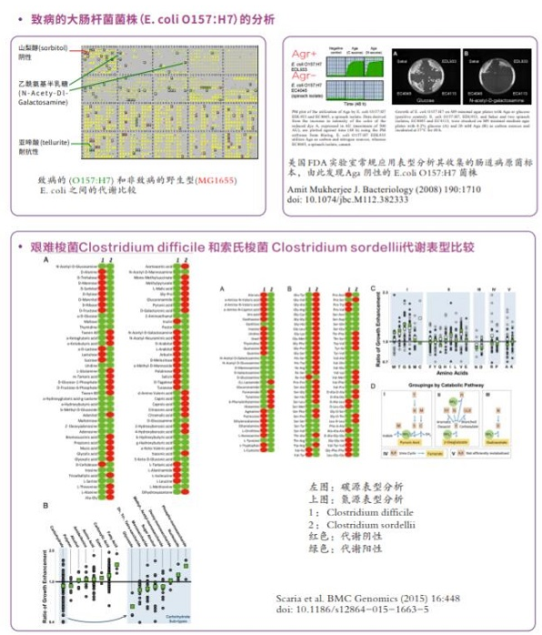 通過分子生物學手段往往無法區(qū)分同種微生物的不同菌株,更無法對相同菌株在不同環(huán)境下的特性進行對比分析,而PM系統(tǒng)則可快速鎖定其代謝差異,為后期進一步的研究指明方向并提供相應(yīng)數(shù)據(jù)。特別適合微生物代謝、致病機理研究以及進行流行病學分析。