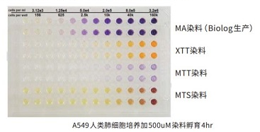BIOLOG專利開發(fā)的MA/MB/MC染料,與傳統(tǒng)的細胞染料XTT、MTT和MTS相比,具有背景顏色干擾小、靈敏度更高、線性范圍更寬等特點,是PMM平臺最核心技術(shù)之一。